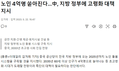 2025년 노인인구 3억, 2032년 노인인구 4억명이 예정 되어있는 몇년내 초고령화사회 진입 등 하방 압력이 강하다고 봐야하고
