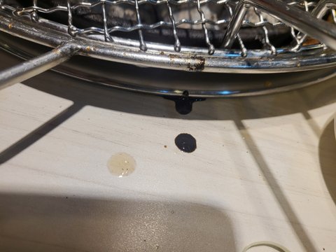갑자기 고기위에 검은 기름때가 크리미하게 우수수 떨어짐