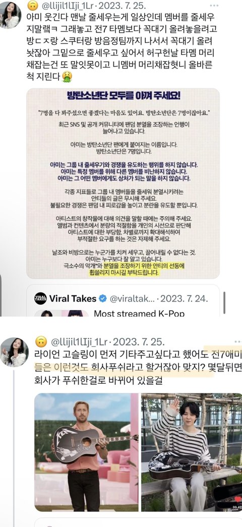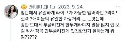 자기멤버가 라이브로 문제되니, 심지어 그 멤버는 자신의 부족함을 인지하고 스스로 노력으로 극복하겠다며 성숙한 태도를 보였는데, 우리 악개여사님은 갑자기 정국이에게
