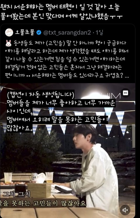 진짜 태현이였네ㅋㅋㅋㅋ수빈이형이 힘든점 안 말해줘서 서운했던 태현이래요