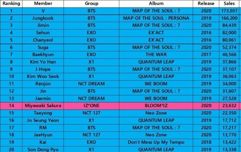 요즘 엄청나게 판매량이 늘었네 저때 bts 일부멤버만 10만장 넘겼는데