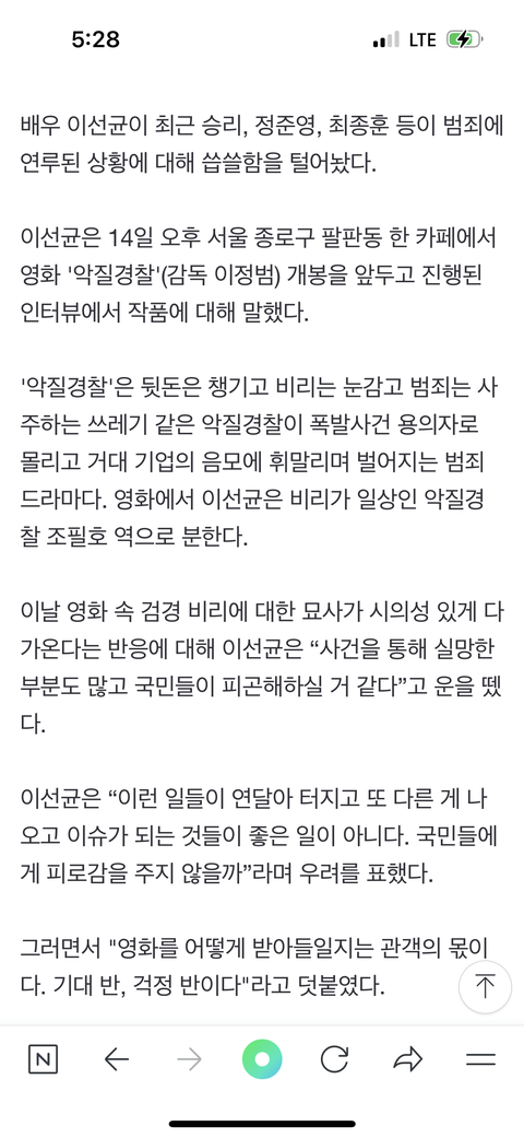 이선균 “승리, 정준영에게 실망했다“