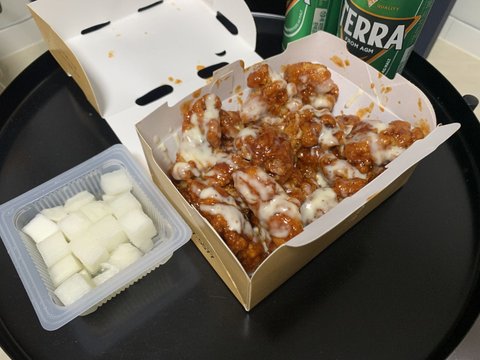 요즘에는 전 순살이 좋드라고요? 먹기도 편하고~ 그럼에도 닭다리살은 포기할 수 없어서 더블팝 순살양념 시켜 봤어요 ㅋ양념 소스도 진하고 치즈 크림소스로 마무리 되서 더 맛난듯~자연스럽게 냉장고에서 전 맥주를 꺼내왔습니다.. ㅎㅎㅎㅎ