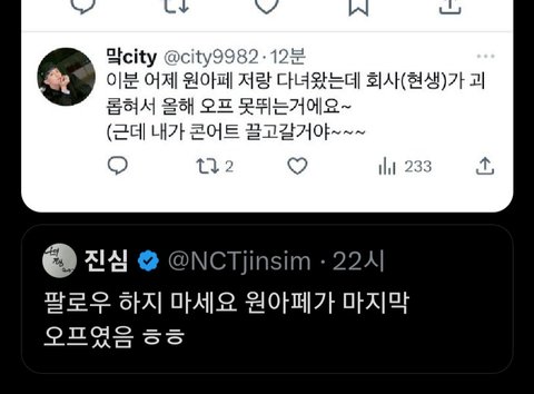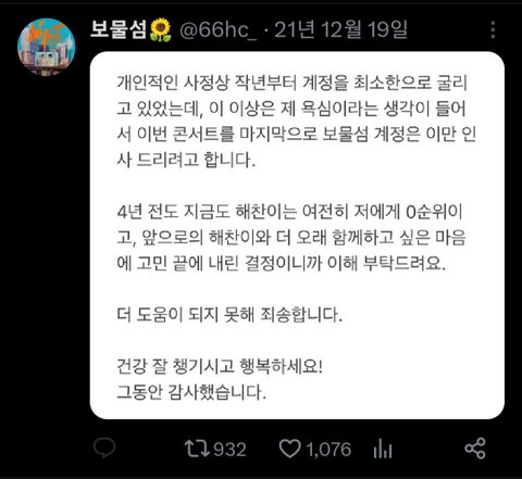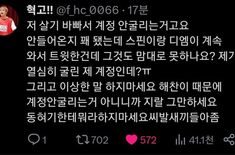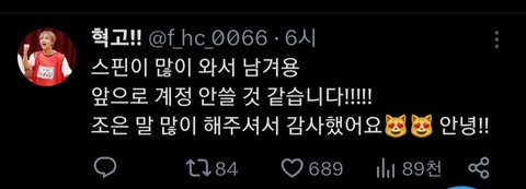 해찬 넴드들이 계정 못 굴릴것같다고 트윗 올림