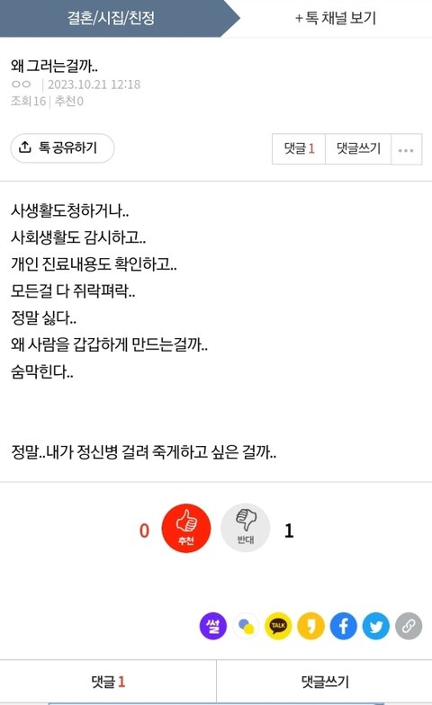 핵사발 댓글 봐봐 너 아픈거 알고 있냐고 병원은 왜 안 가냐잖아