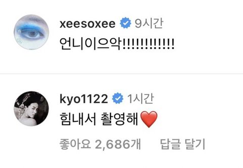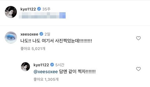 그리고 다른 송혜교의 SNS 게시물에 댓글을 남기는 한소희
