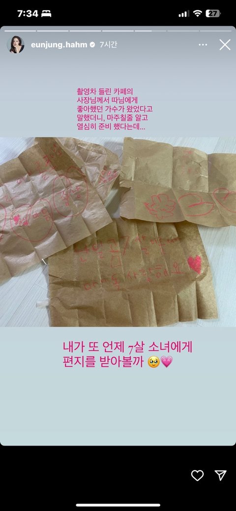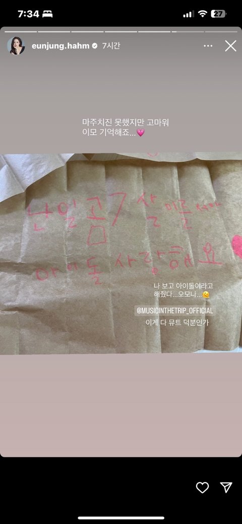 다음날 인스타 스토리에 저희딸 편지까지 3개나 올려주시고... 진짜 ........천사가 존재했구나.. 싶었습니다.........