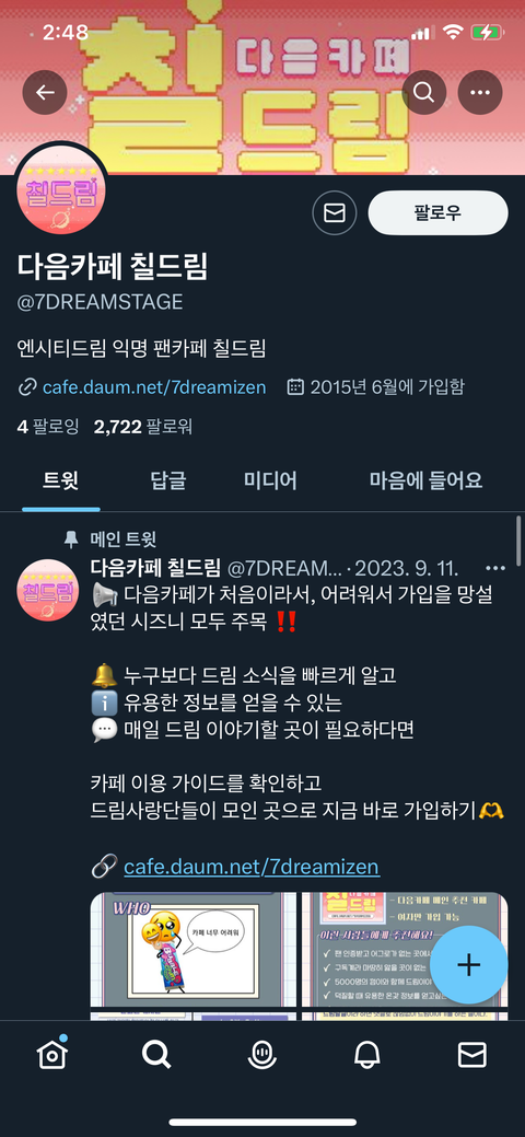 참고로 드림 아카이브계정 팔로잉 목록에 있음