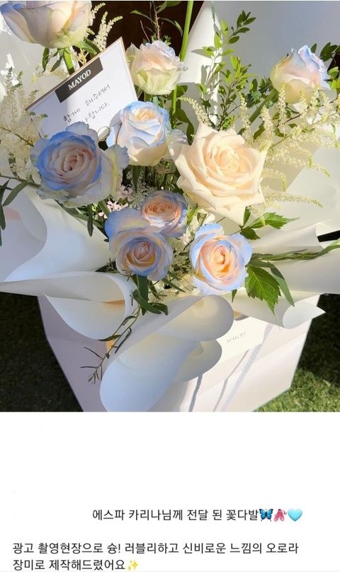 이거보니까 카리나한테 전달된 꽃다발 사진 보고 단체 말고 카리나 혼자서 개인 광고 촬영 찍나? 대박 요즘 에스파들 개인 스케줄 하더라