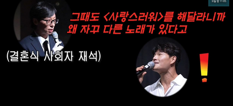 근데 그 때 유재석이 김종국한테 '사랑스러워'를 불러달라고 했으나