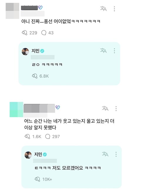 라이브할 때도 웃엇었는데 댓글도 ㅋㅋㅋㅋㅋㅋㅋㅋ