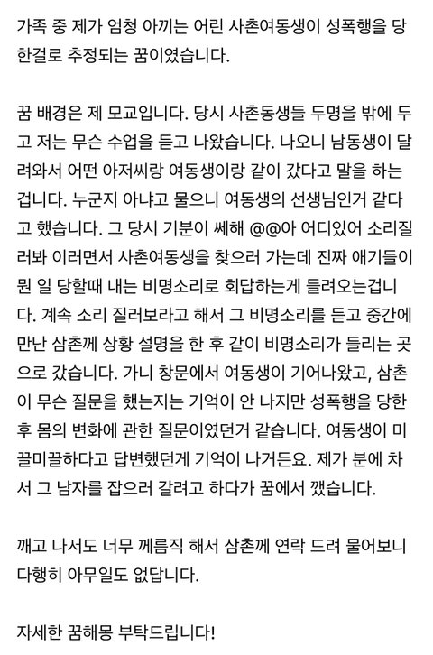 이거 꿈해몽 해주실 수 있는 분 있을까요