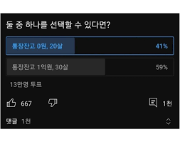 sns에서 이 사진 보고 궁금해서 엄마한테도 의견 물어봤는데 너무 밸런스 붕괴라면서... 0원 20살/100억 30살이어야 고민 좀 해볼 것 같다고 하세요