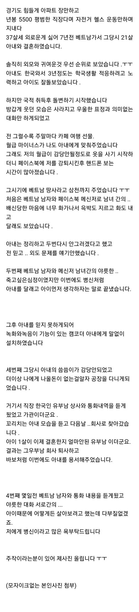 첨부된 짤에 나온 집 나중에 어떻게 되겠어요. 보나마나 이혼하면 한국적을 딴 베트남 여자가 지네 베트남 남자 끌어들여서 결혼하고 둘다 한국적을 딴 뒤 (애초에 처음부터 저걸 목적으로 자기 여자 한국에 보냈겠죠)