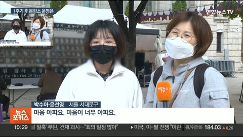 <박수아·윤선영/서울 서대문구> "저도 제 생활을 하다보니 잊고 지내다가 요즘 다시 뉴스에 나오고, 지나는 길에 '아 여기가 그 위치구나' 하고 들러보니, 마음 아파요. 마음이 너무 아파요."