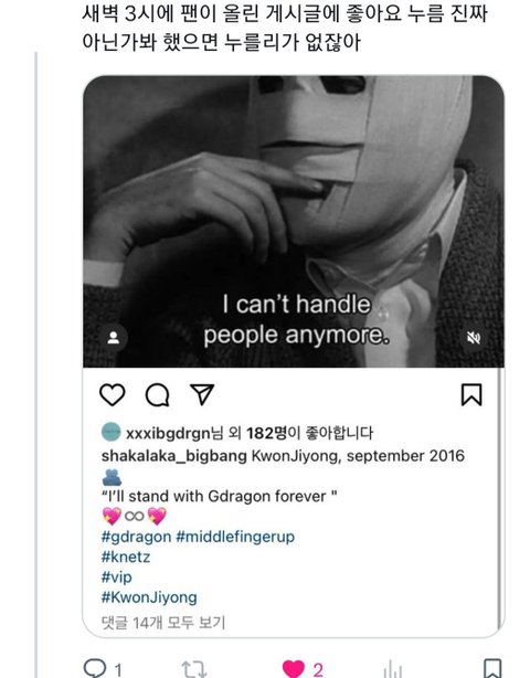 지금 지디가 팬들 인스타 좋아요 누르고 다님