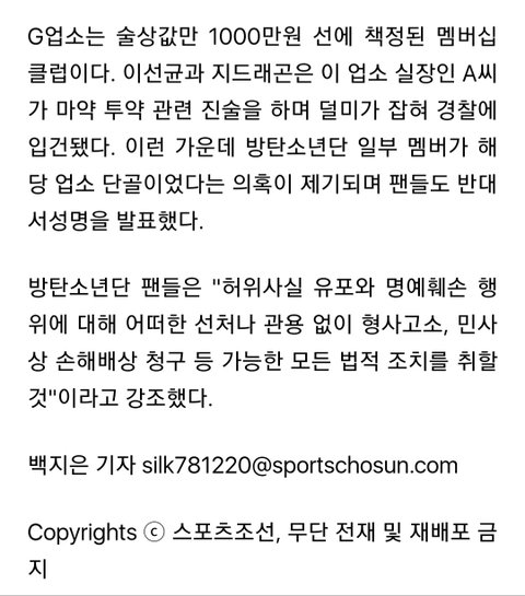 마약은 지디가 했는데 방탄으로 덮으려는 얄팍한술수