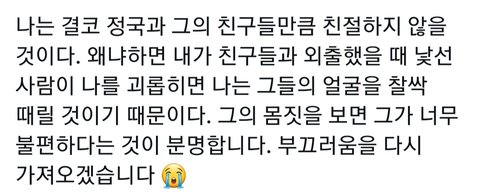 그 외퀴들 일행이 정국팔 3번 만졌다고 자랑하고 노래불러 달라고 조르고 나중에 셋이 떠나간 자리에 다시 가서 정국 은우가 마시던 종이컵 쌔벼서 도망감