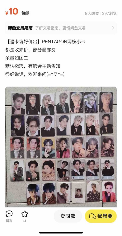 xianyu(중국 중고 앱)에서 대량으로 무료로 증정하는 옌안 포카(배송비 10=1800krw만 결제하시면 되다