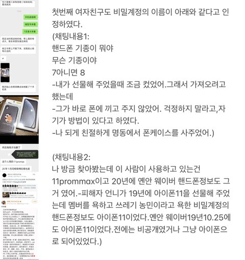 죄4: 팀활동때 연애를 수차례 했었고 증거는 아래와 같다.여성분이 옌안 몸에 차고 있는 물건들의 사진을 보여주었다. 모두 여성분이 사준것이였다