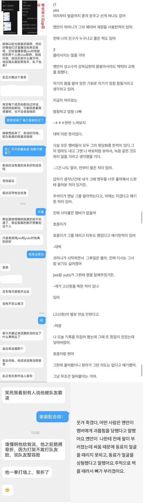 죄3: 수차례 팀배신. 팀 활동기간 거의 절반은 컴백활동하지 않고 드라마 촬영팀에서 조연을 한다. 팬의 폭로에 의하면 19년에 팀으로 활동 안하지만 전멤버와 쇼핑하고 있었단다. 19년부터 팀 탈퇴 하려고 했지만 위약금을 감당할 수 없어 그냥 팀에 있었던 것이다.