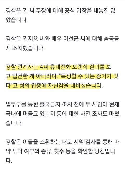 지디 마약 부인 경찰 입장 나왔다