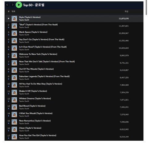 당분간 테일러 스위프트 제외하곤 스포티 영업으로 도배하는 글들은 안 봐도 되겠다