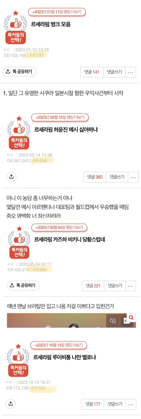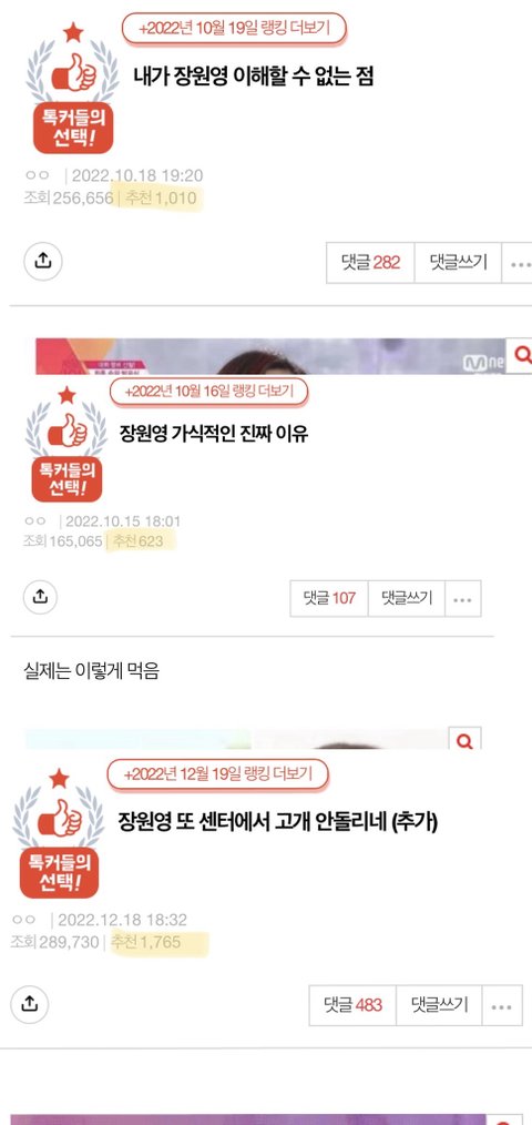 그리고 판에 매일같이 올라오고 추천수는 최소 1000개 이상 눌리는 글들