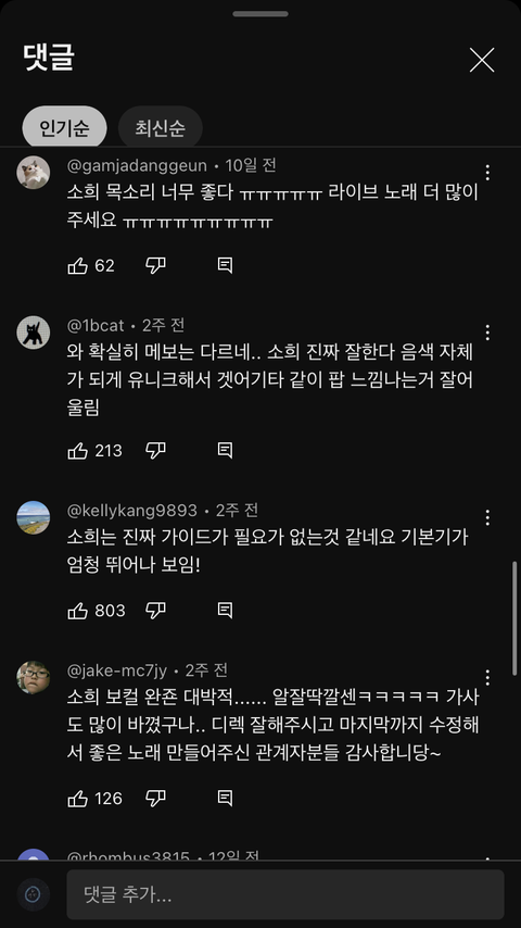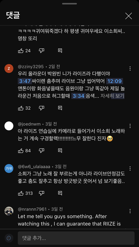 라이즈 호감이라 자컨보는데 댓글에 소희 칭찬밖에 없어서 개놀람ㅋㅋㅋㅋ근데 진짜 잘하긴 하더라