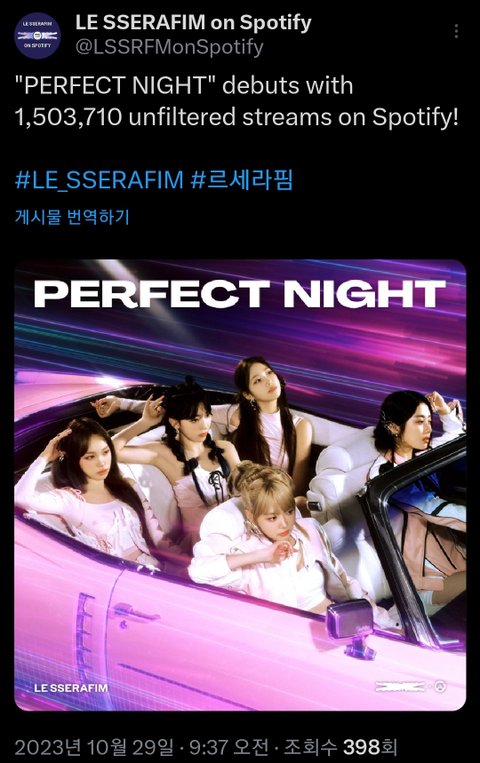 르세리핌 이번 영어 신곡 1일치 스포티 스밍량이 4세대 통틀어 뉴진스 다음으로 높대