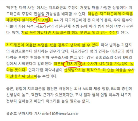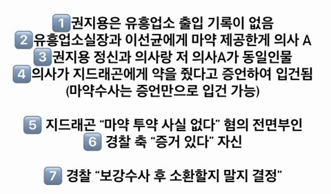 현재 지디를 증언한 사람은 이선균과 유흥업소에 마약을 제공한 의사고 지드래곤