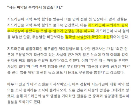 경찰쪽에서 지디 마약 입증 증거 부족한듯??