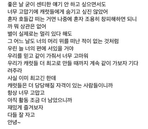 초동 몇백만장이라는 거 캐럿들도 축하는 하지만 사실 환경문제 때문에 이제 이런 문화도 그만 하자 이런 분위기였음 다들 축하해 자 이제 나무 심장 이러고ㅋㅋㅋ