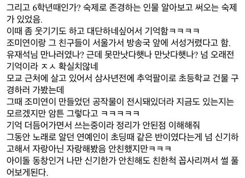 존경하는 인물 알아오기 숙제에서 존경인물 유재석이라 유재석 인터뷰하려고 소속사한테 전화 걸었는데 거절당했대 순수하다해야할지 웃기다해야할지ㅋㅋㅋㅋㅋㅋㅋㅋㅋㅋㅋㅋㅋㅋ