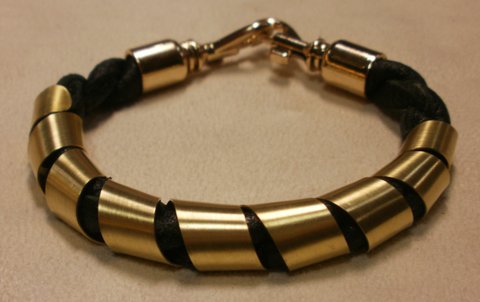 꼬임 천연 가죽줄과 스프링 형태로 가공한 황동판을 콜라보하여 제작한 팔찌입니다.(마디샤가죽공예)