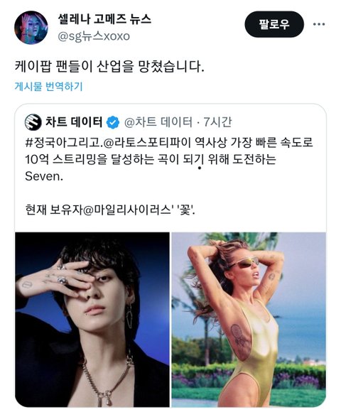 케이팝이랑 꾹이 까는 글보면 셀레나팬들이야