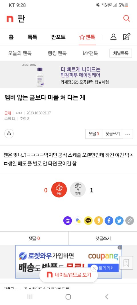 ‼️조방‼️멤버 앓는 글보다 마플 처 다는 게