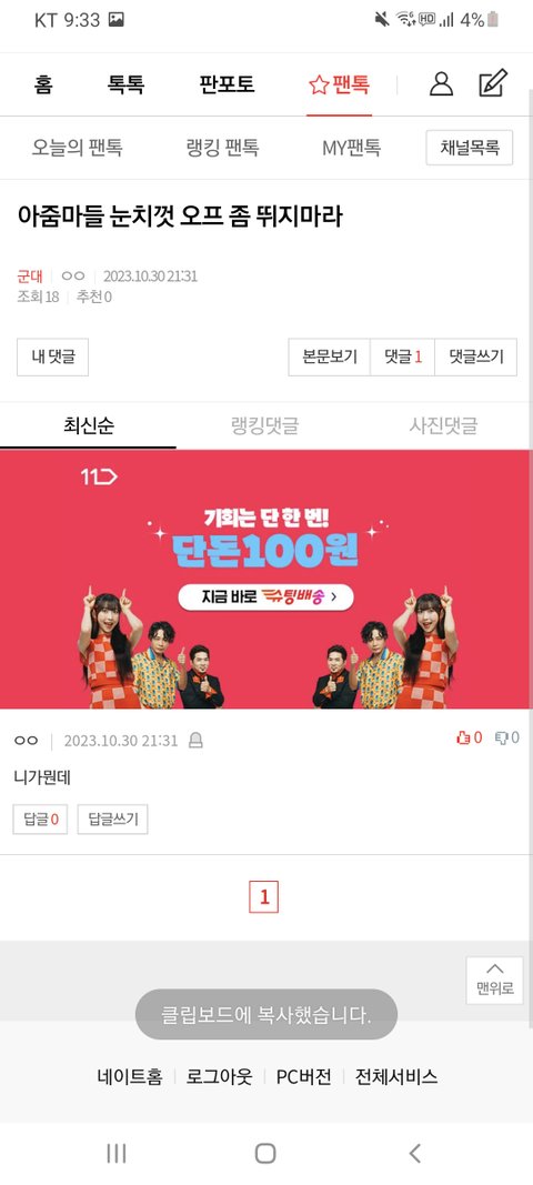 ‼️조방, 댓글도 여기서 봐‼️아줌마들 눈치껏 오프 좀 뛰지마라