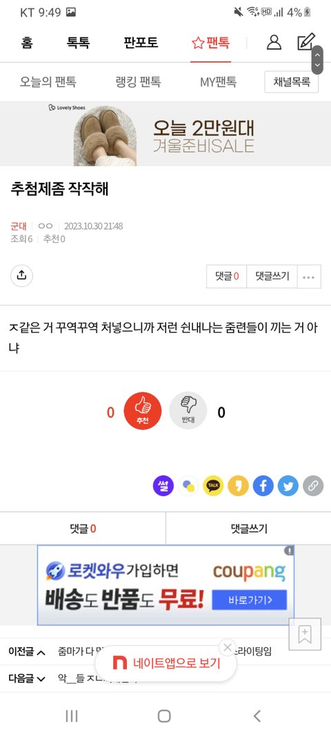 줌마가 다 먹었네, 판 망했네, 팬톡 망했네 다 가스라이팅임