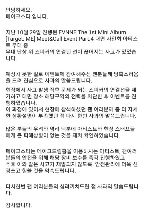 ++추가 ㅁㅇㅋㅅㅌ 사과문 올라옴