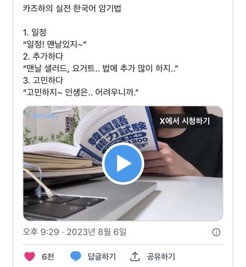 저번 브이로그에서 한국어 공부하는 모습을 보여준 카즈하