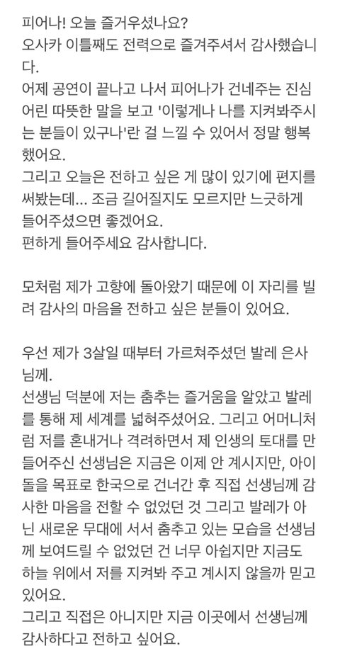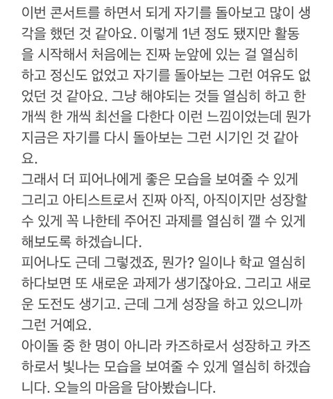 팬에 대한 애정과 본인의 목표를 조곤조곤 얘기해줌