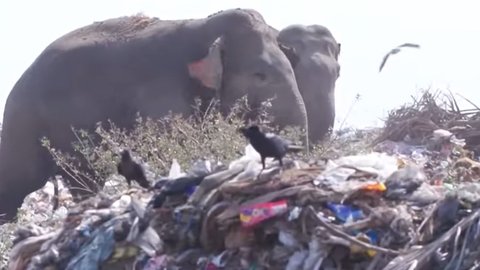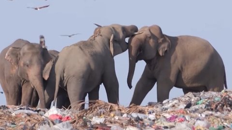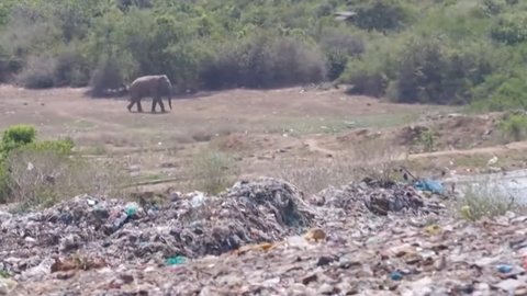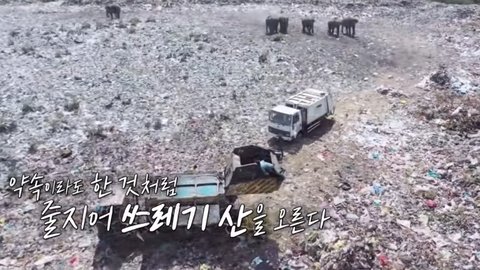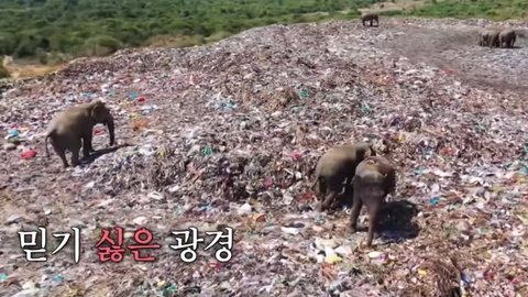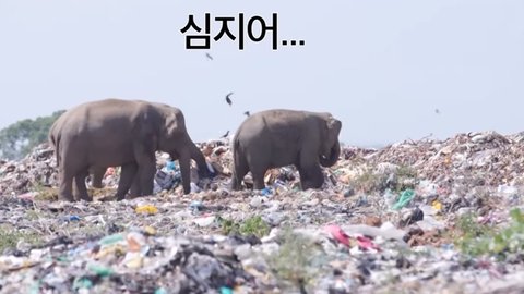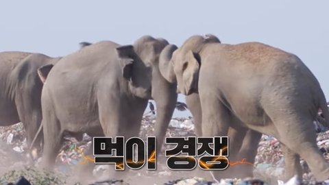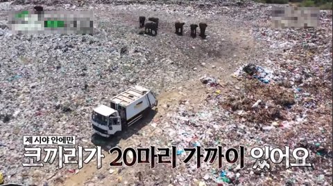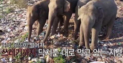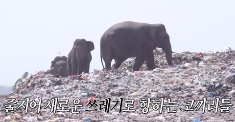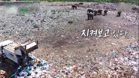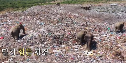 신선한 쓰레기(?) 들을 먹기 위해 몰려든 코끼리들