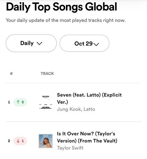 데일리 차트 ( 테일러는 안중에도 없을듯. 글로벌도 아니고)