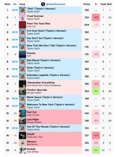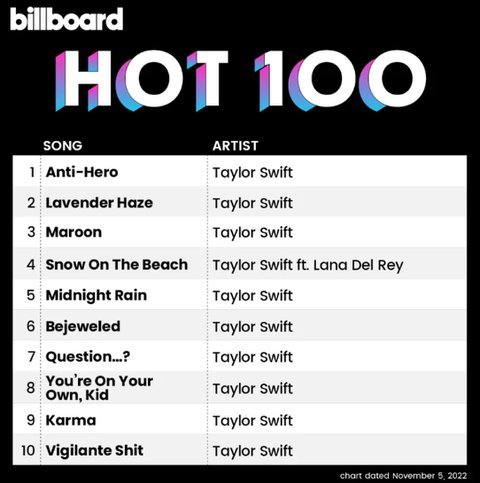 테일러스위프트 현시각 빌보드 핫100 예측