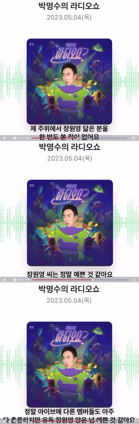 예쁜연옌들 수도없이 만나봤을 박명수가 봐도 예쁜 아이돌 장원영임. 박미선, 정재현도 장원영 예쁘다고 언급했었고