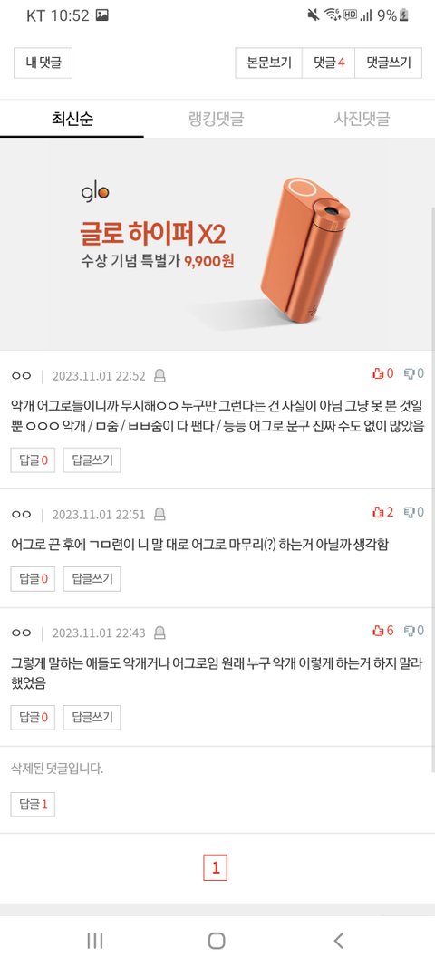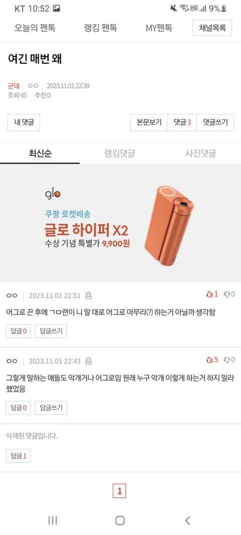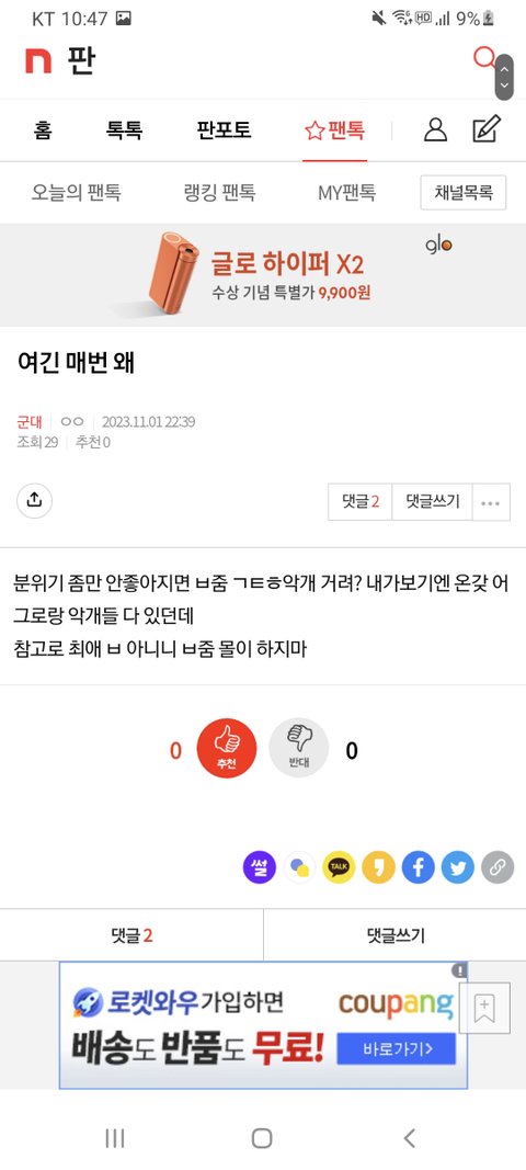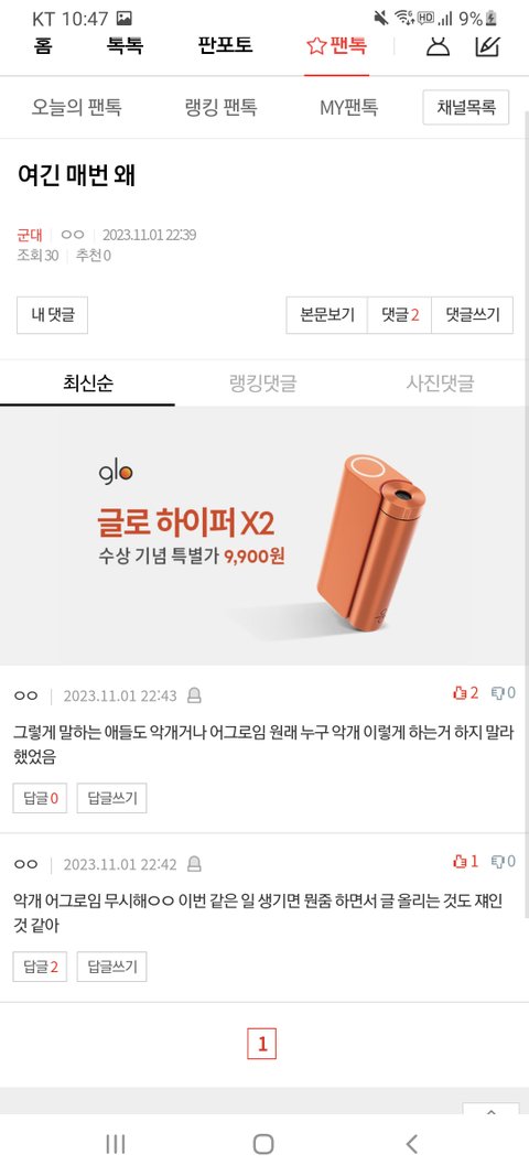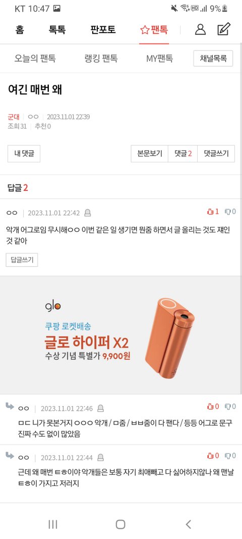 팬톡 댓글 검색 보기