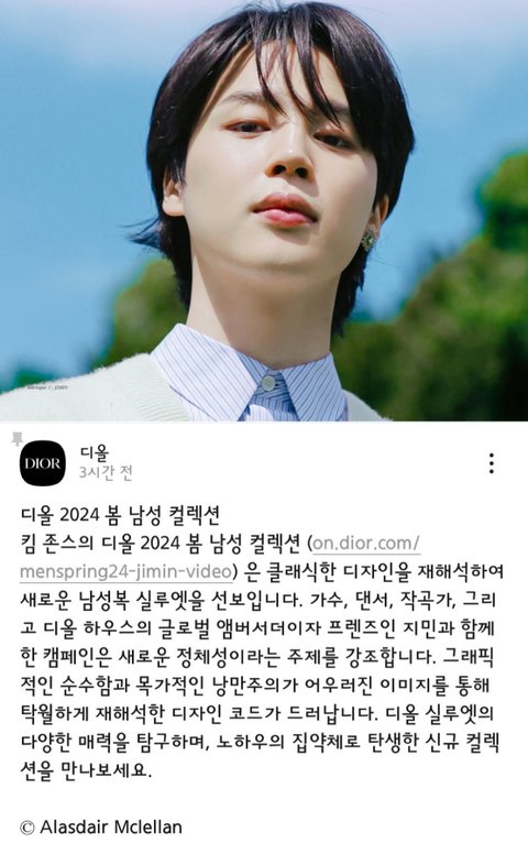 멘트도 너무 좋아! 가수, 댄서, 작곡가, 그리고 디올 하우스의 글로벌 앰버서더이자 프렌즈인 지민과 함께한 캠페인은 새로운 정체성이라는 주제를 강조합니다