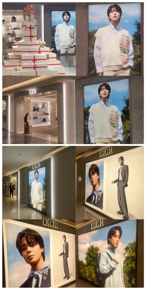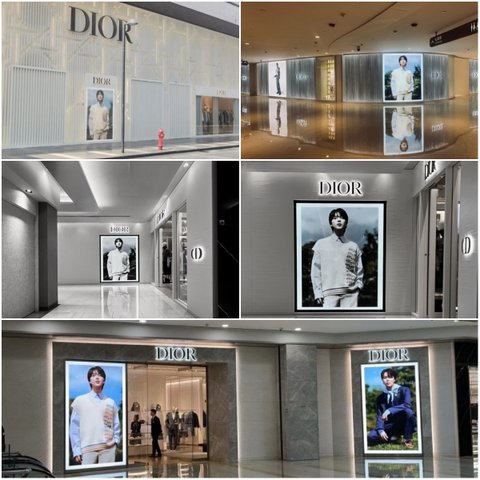 캠페인 영상과 함께 여러 나라 백화점들에 걸린 이번 시즌 디올 지민이 사진들