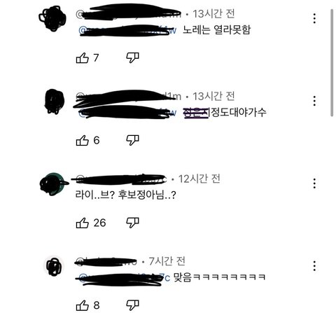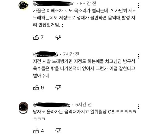 후보정이니~ 라이브가 아니니~ 음역대가 낮니~ ㅇㅈㄹ 염병들을 떠네...